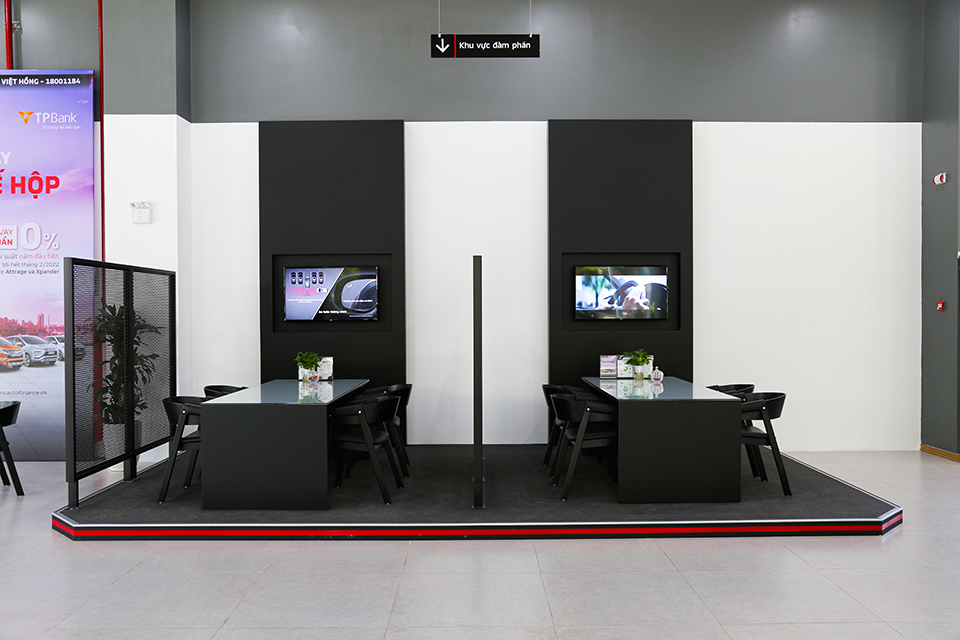 Với diện tích gần 6.000m2, trong đó khu vực Showroom rộng gần 600m2 được trưng bày tất cả các dòng xe mới nhất của Mitsubishi Motors Việt Nam. Diện tích phòng chờ theo tiêu chuẩn 5 sao rộng gần 200m2 được trang bị các trang thiết bị giải trí cao cấp phục vụ miễn phí khách hàng như: ghế massage, wi-fi tốc độ cao, dịch vụ truyền hình internet HD, máy tính truy cập internet tốc độ cao, khu vui chơi dành cho trẻ em cùng với quầy bar phục vụ đồ uống miễn phí cho khách hàng.