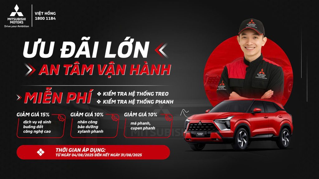 CHÀO HÈ RỰC RỠ – ƯU ĐÃI CỰC ĐÃ CÙNG XƯỞNG DỊCH VỤ MITSUBISHI MOTORS VIỆT HỒNG