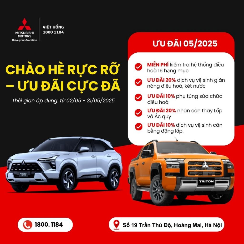 CHÀO HÈ RỰC RỠ – ƯU ĐÃI CỰC ĐÃ CÙNG XƯỞNG DỊCH VỤ MITSUBISHI MOTORS VIỆT HỒNG