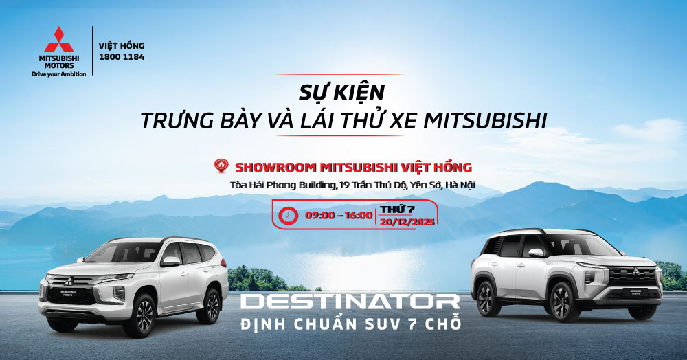 Quý Khách đã sẵn sàng cầm lái Mitsubishi Destinator – mẫu xe đang được quan tâm nhất hiện nay? ———– Thời gian: 09h00 – 16h00, thứ 7 ngày 20/12/2025 Địa điểm: Showroom Mitsubishi Việt Hồng, 19 Trần Thủ Độ, Yên Sở, Hà Nội. ———– Tại sự kiện, Quý Khách sẽ được: Trải nghiệm lái thử […]