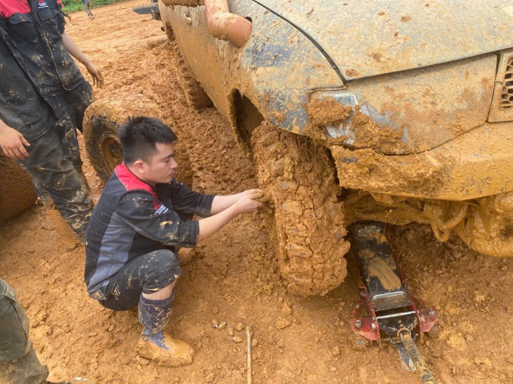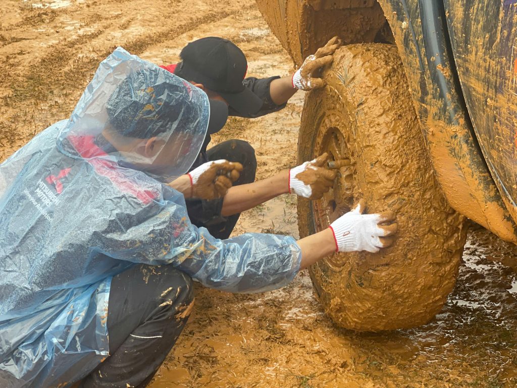 Bùn đất chỉ làm đường đua thêm thử thách, không thể cản bước tinh thần chiến đấu của những chiến binh Mitsubishi!