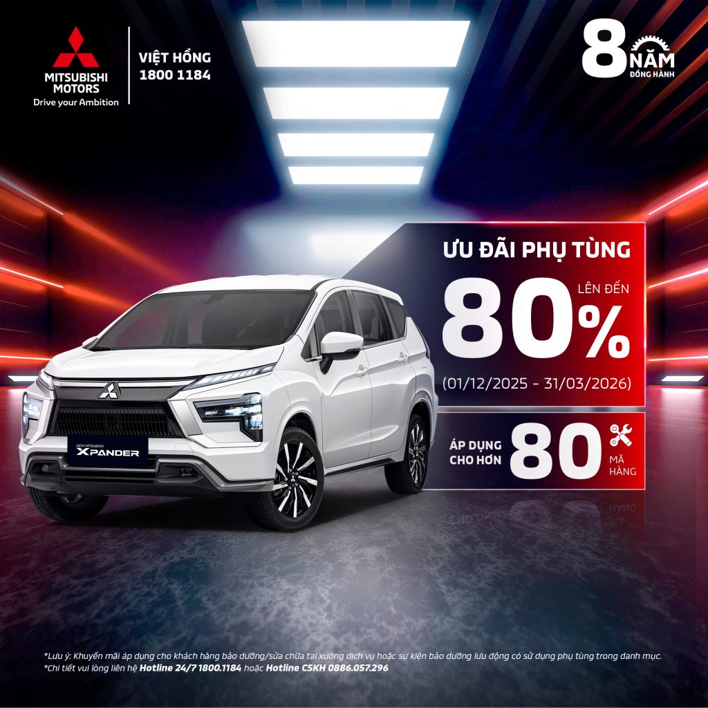 MITSUBISHI XPANDER – MỪNG SINH NHẬT 8 NĂM – ƯU ĐÃI PHỤ TÙNG SỬA CHỮA LÊN ĐẾN 80%