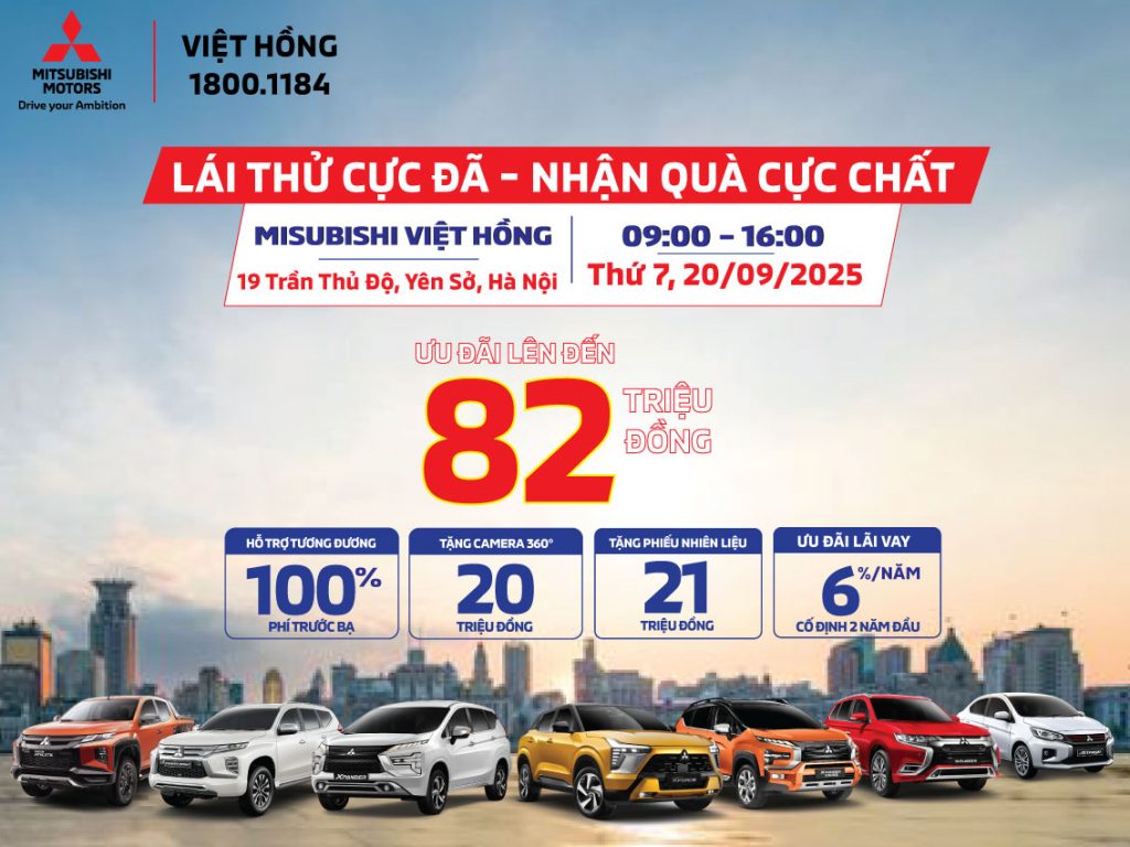 Địa điểm: Showroom Mitsubishi Việt Hồng, Tòa Hải Phong Building, 19 Trần Thủ Độ, Yên Sở, Hà Nội. Thời gian: 09h-16h00, Thứ 7, ngày 23/08/2025. ———– Hoạt động nổi bật tại sự kiện: Chiêm ngưỡng các dòng xe Mitsubishi. Cầm lái thực tế các dòng xe Mitsubishi bán chạy nhất trong phân khúc: Xpander, XFORCE, […]