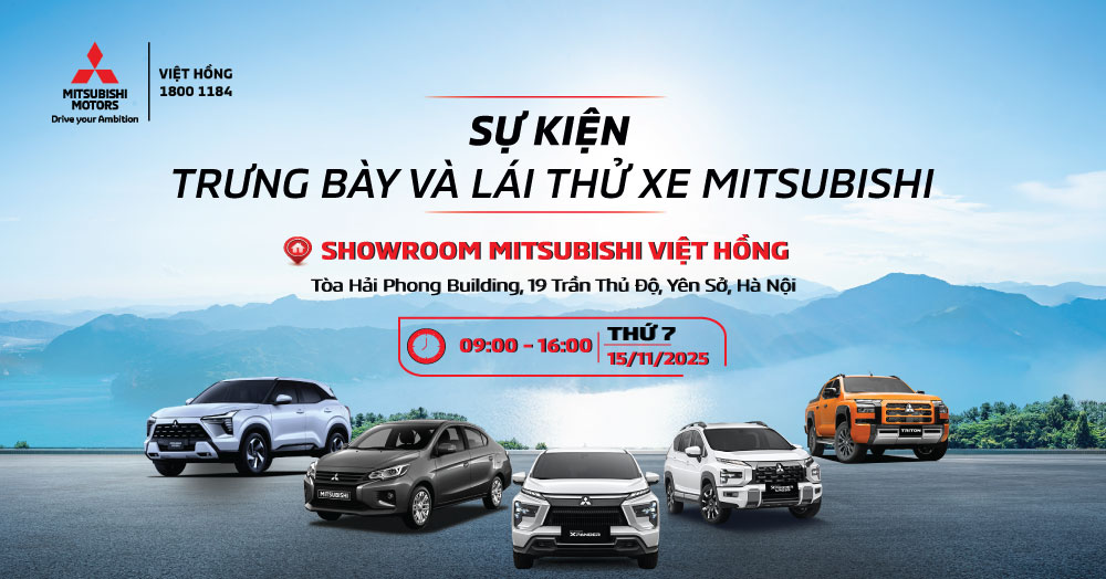 Địa điểm: Showroom Mitsubishi Việt Hồng, Tòa Hải Phong Building, 19 Trần Thủ Độ, Yên Sở, Hà Nội. Thời gian: 09h-16h00, Thứ 7, ngày 15/11/2025. Hoạt động nổi bật tại sự kiện: Chiêm ngưỡng các dòng xe Mitsubishi. Cầm lái thực tế các dòng xe Mitsubishi bán chạy nhất trong phân khúc: Xpander, XFORCE, Tư […]