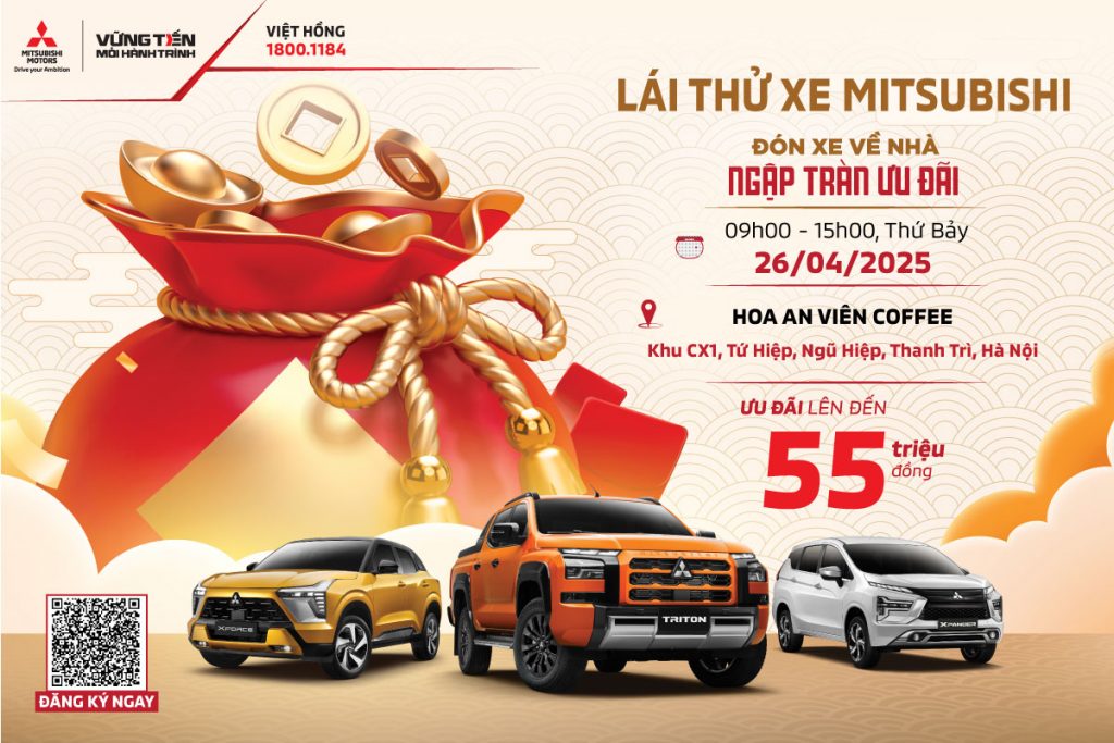 Quý Khách đang tìm kiếm một mẫu xe vừa mạnh mẽ, tiện nghi, lại phù hợp với mọi nhu cầu từ di chuyển hàng ngày đến những chuyến đi xa? Mitsubishi Motors Việt Hồng trân trọng kính mời Quý Khách tham gia sự kiện Trưng bày & Lái thử xe – nơi quy tụ những mẫu xe được yêu thích nhất: